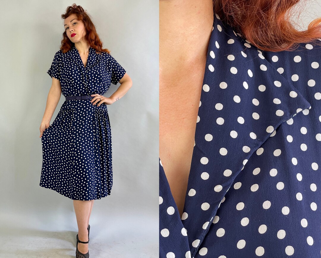 1940s Patty Polka Dots Dress Vintage 40s Navy Blue And White Etsy Uk
